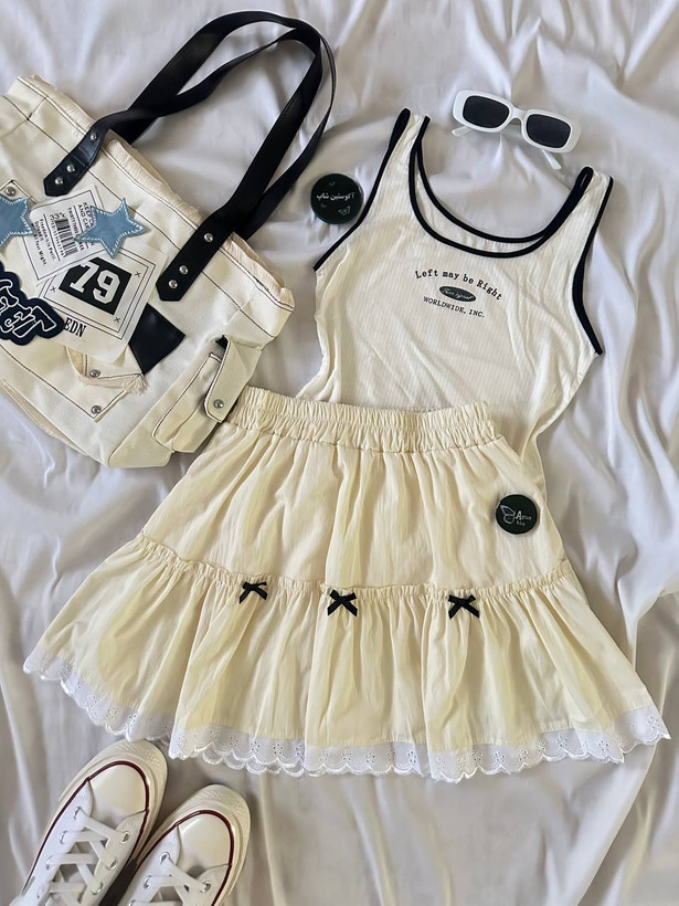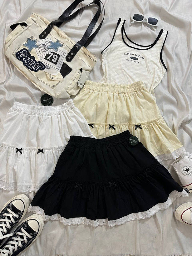 ⭑ دامن کوتاه فانتزی پاپیونی ✨🤍🎶