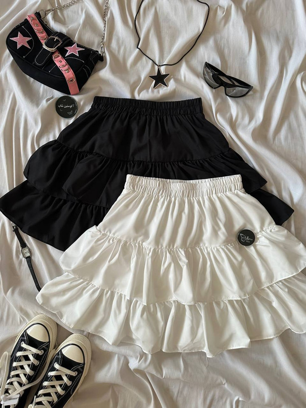 ⭑ دامن کوتاه فانتزی طبقهای 🖤🦢🫧