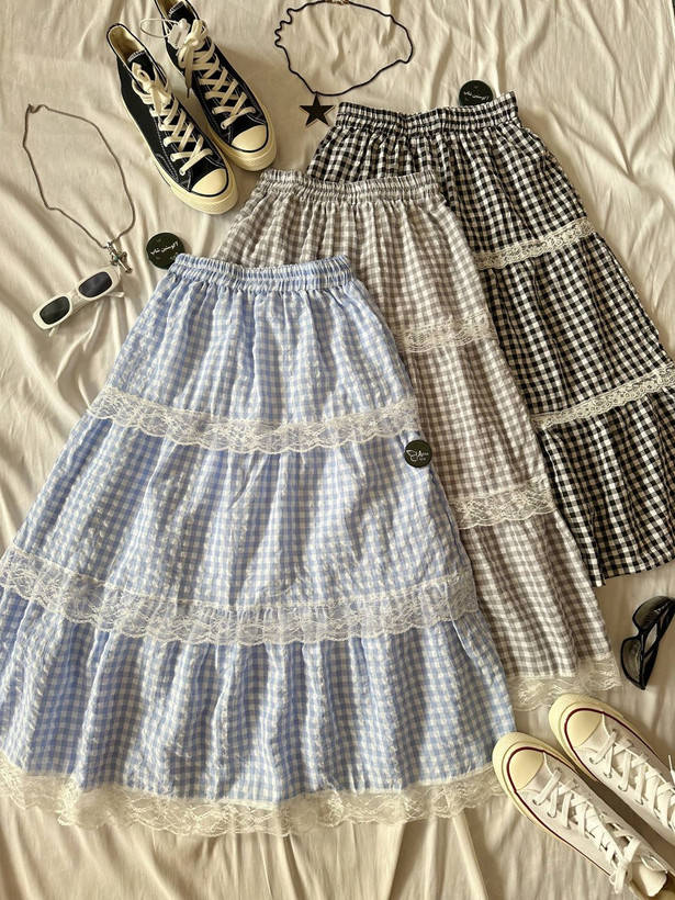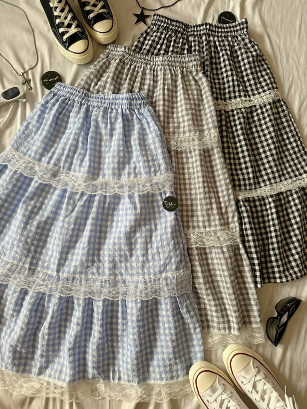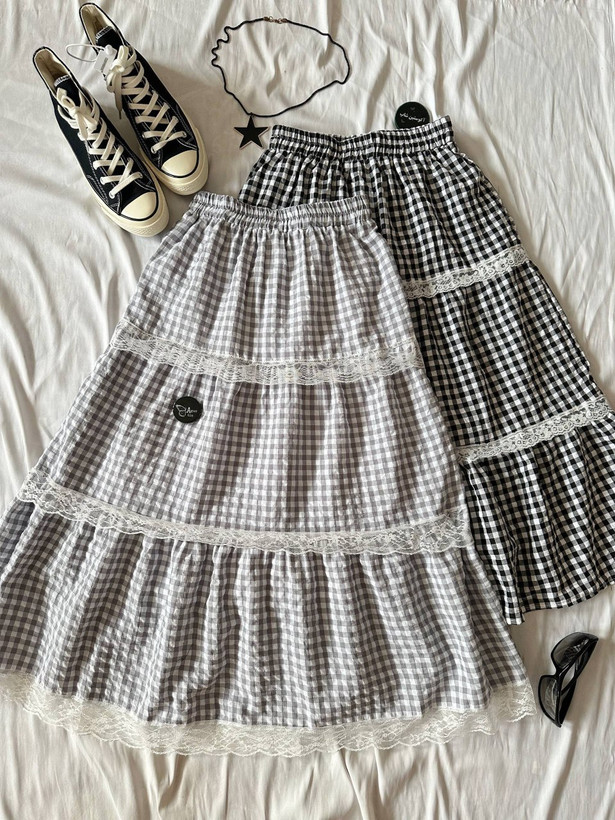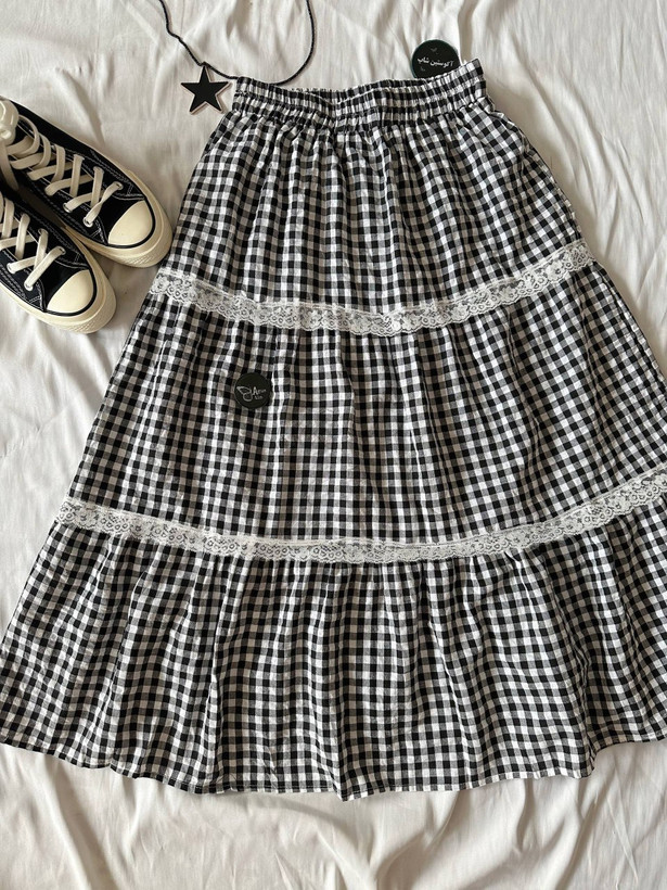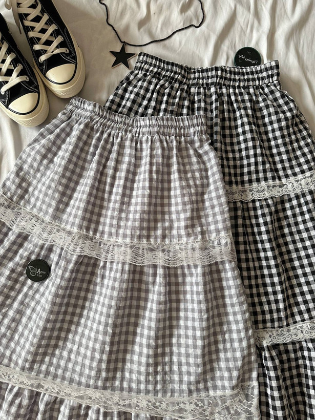 ⭑ دامن چهارخونه پایین توری 🥹🫧