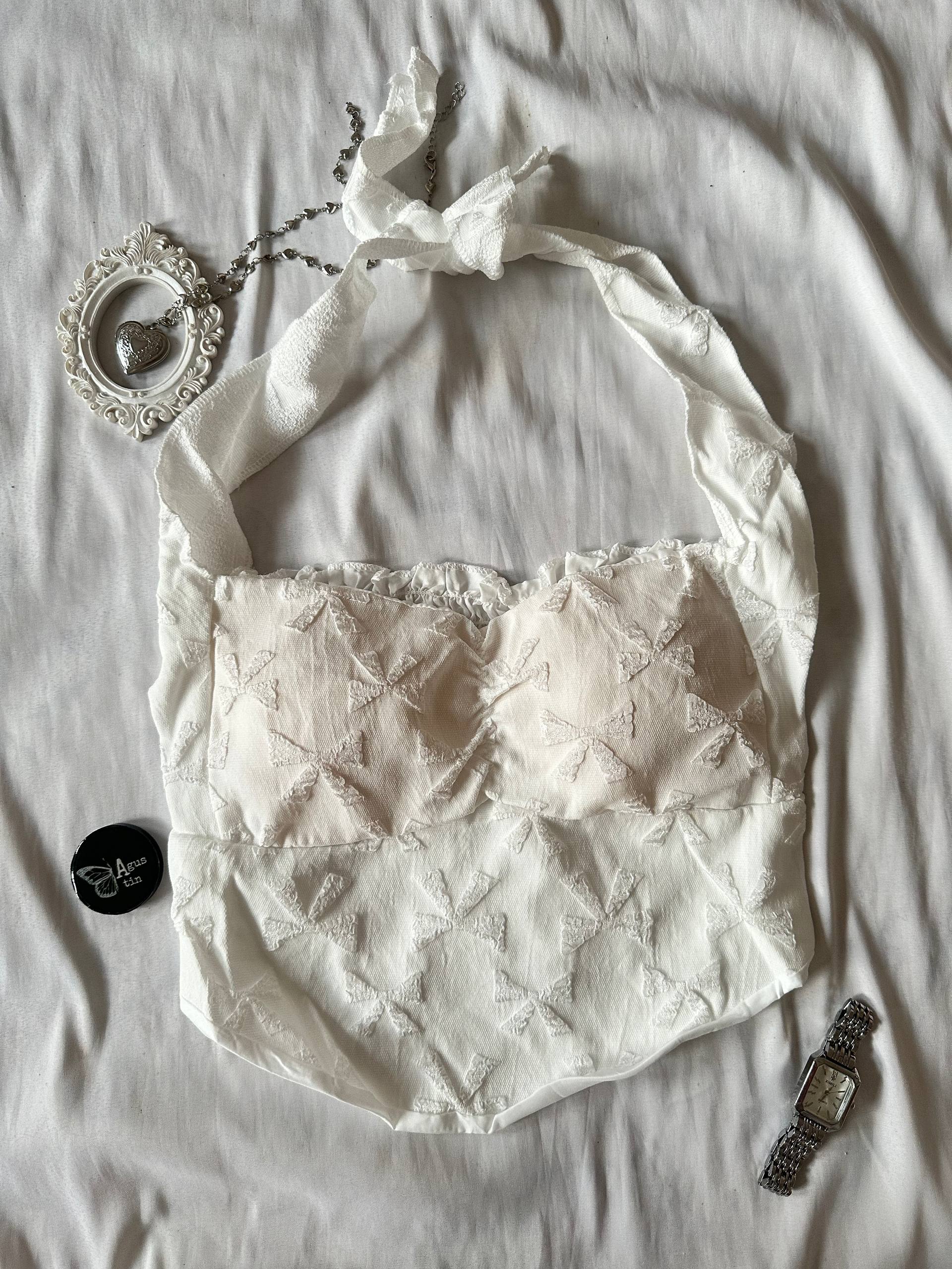 تاپ پشت گردنی پاپیونی 🌚🎀 فری سایز: 36 تا 40 (عکس ها با دوربین گوشی گرفته شده، امکان یکی دو درجه اختلاف رنگ)