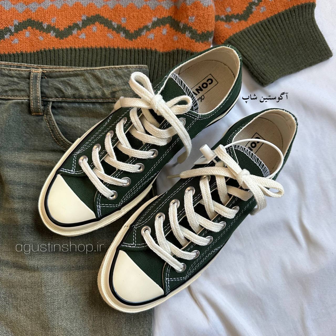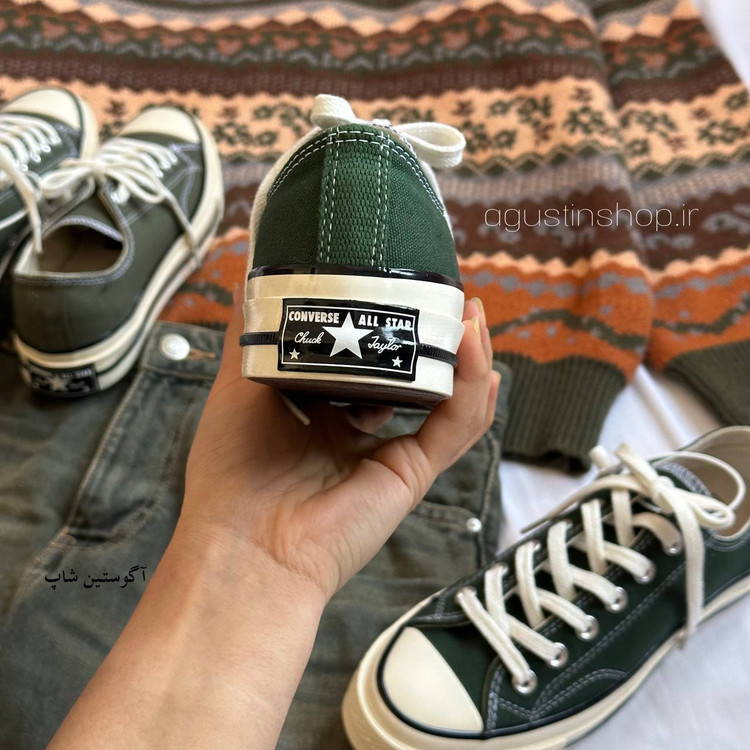 👟 کانورس آل استار ساق کوتاه سبزتیره💚🌱