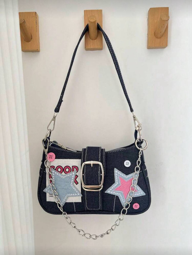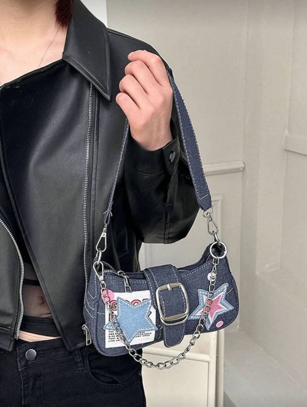 کیف جین ستاره ای + زنجیر 💙⭐️